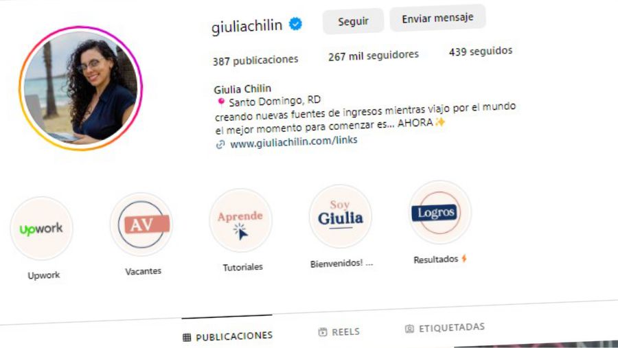Análisis del Perfil de Instagram de Giulia Chilin generadora de contenido sobre Trabajo remoto