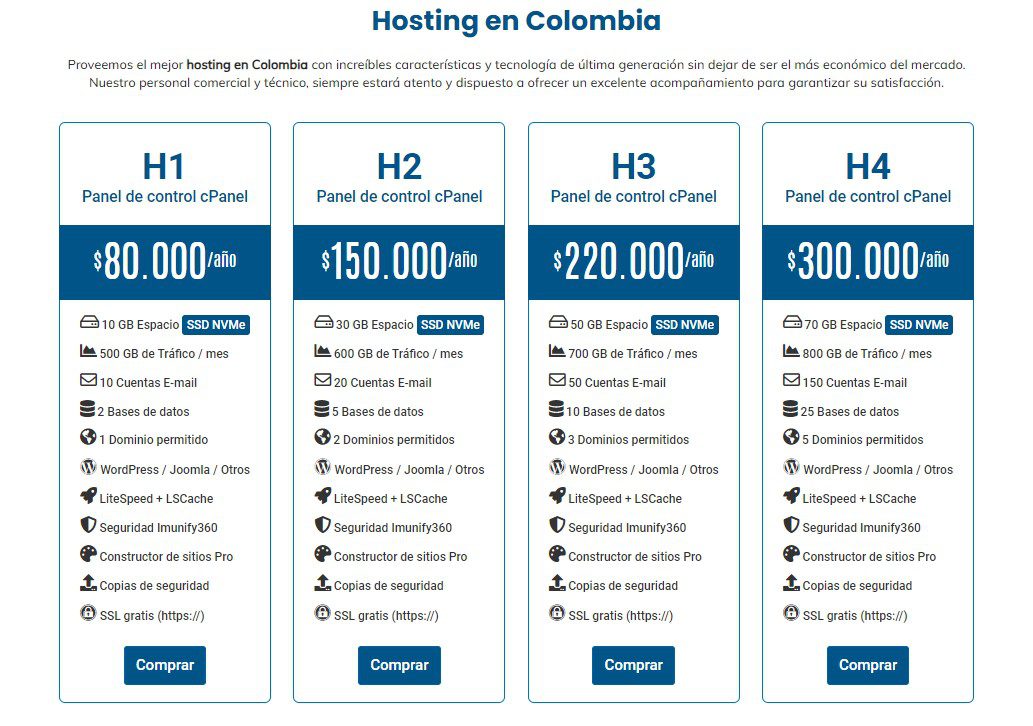 Aquí puedes ver los planes que ofrece Latinoamerica Hosting y sus precios lo que lo hace el mejor Hosting de Colombia